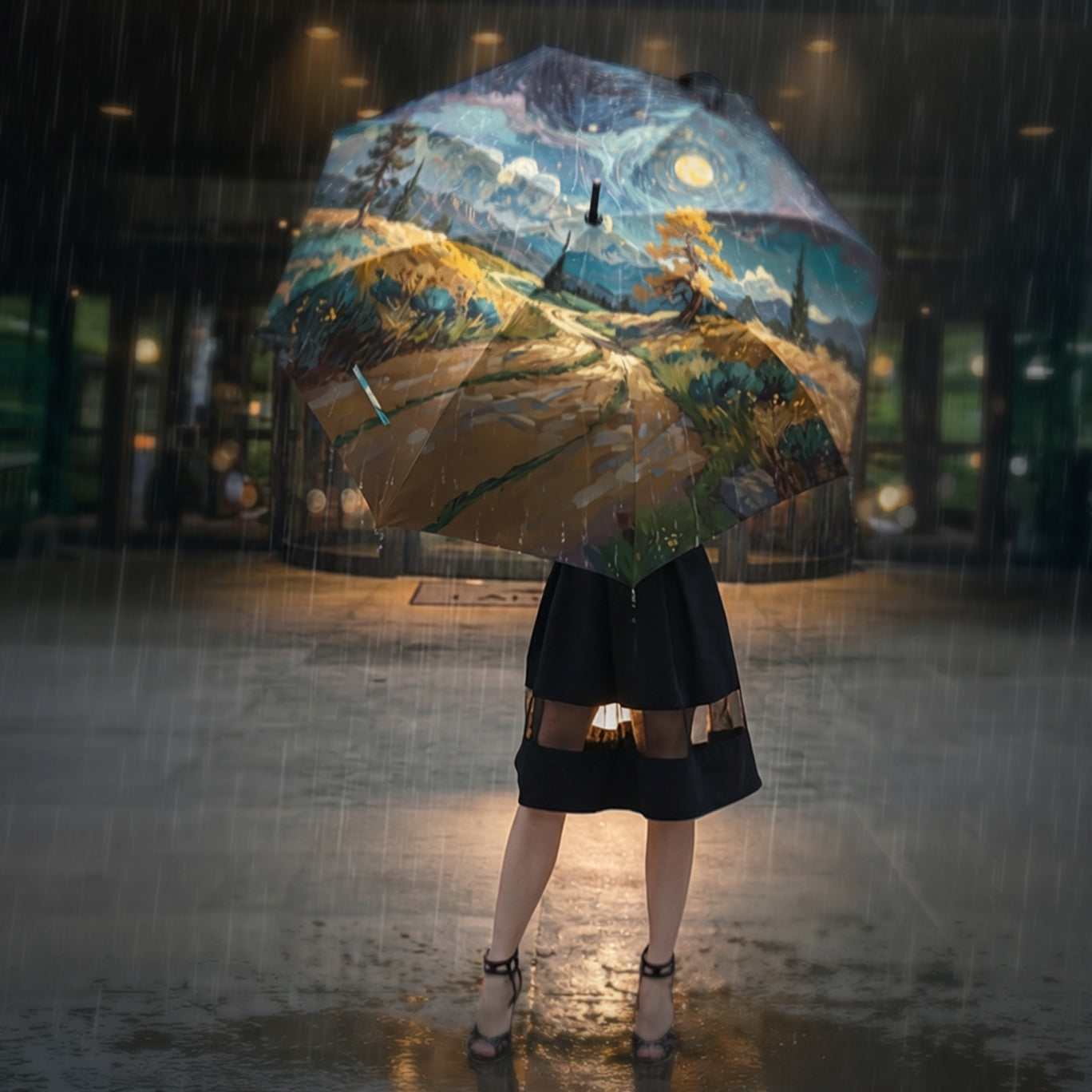 Paraguas plegable artístico - Diseño de paisaje estrellado escénico