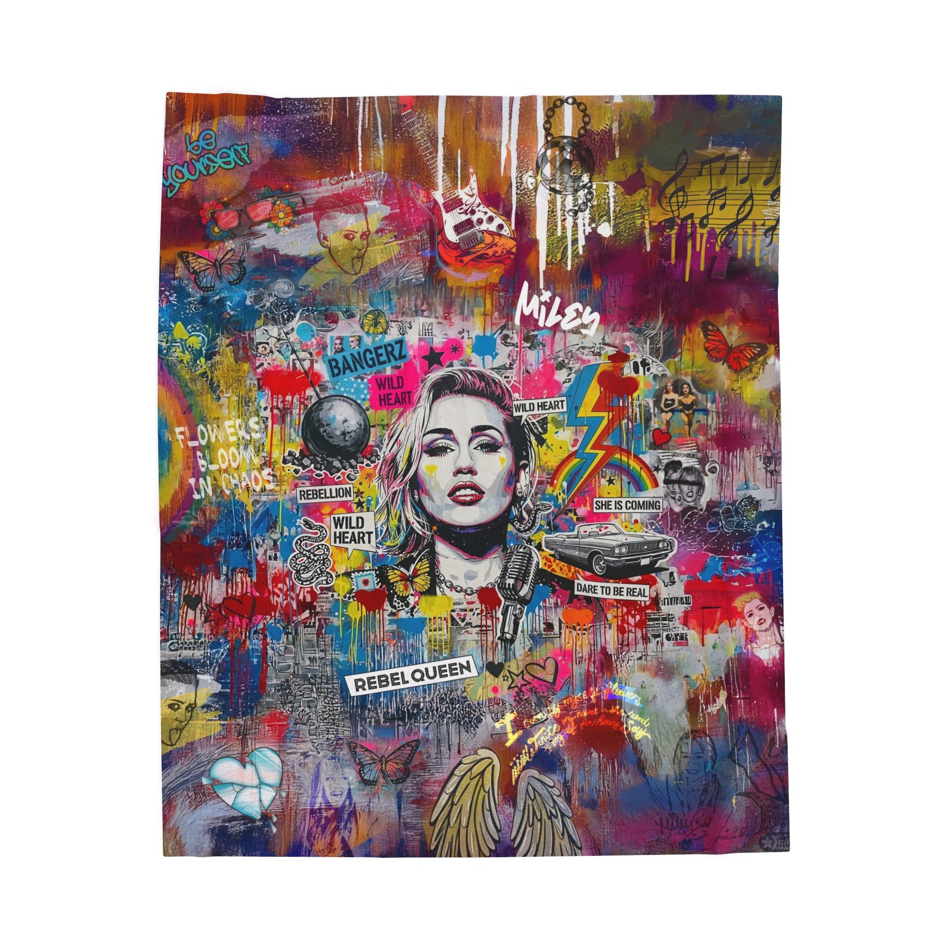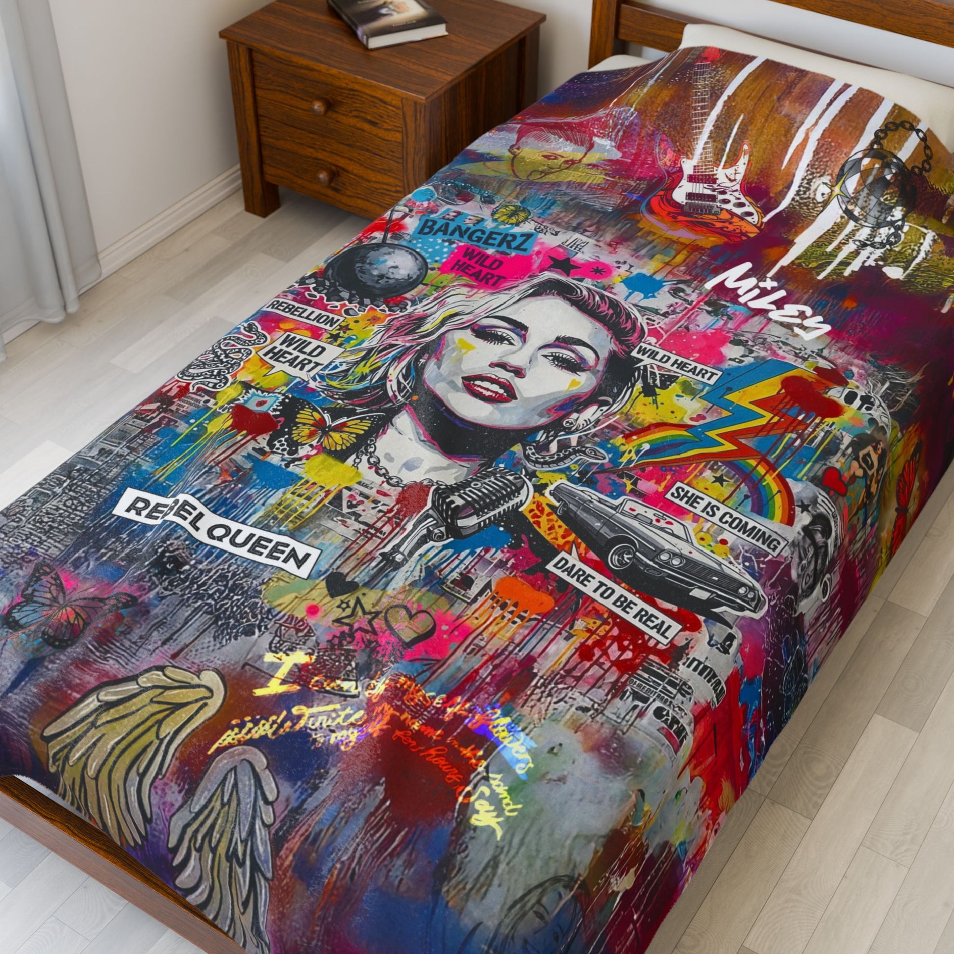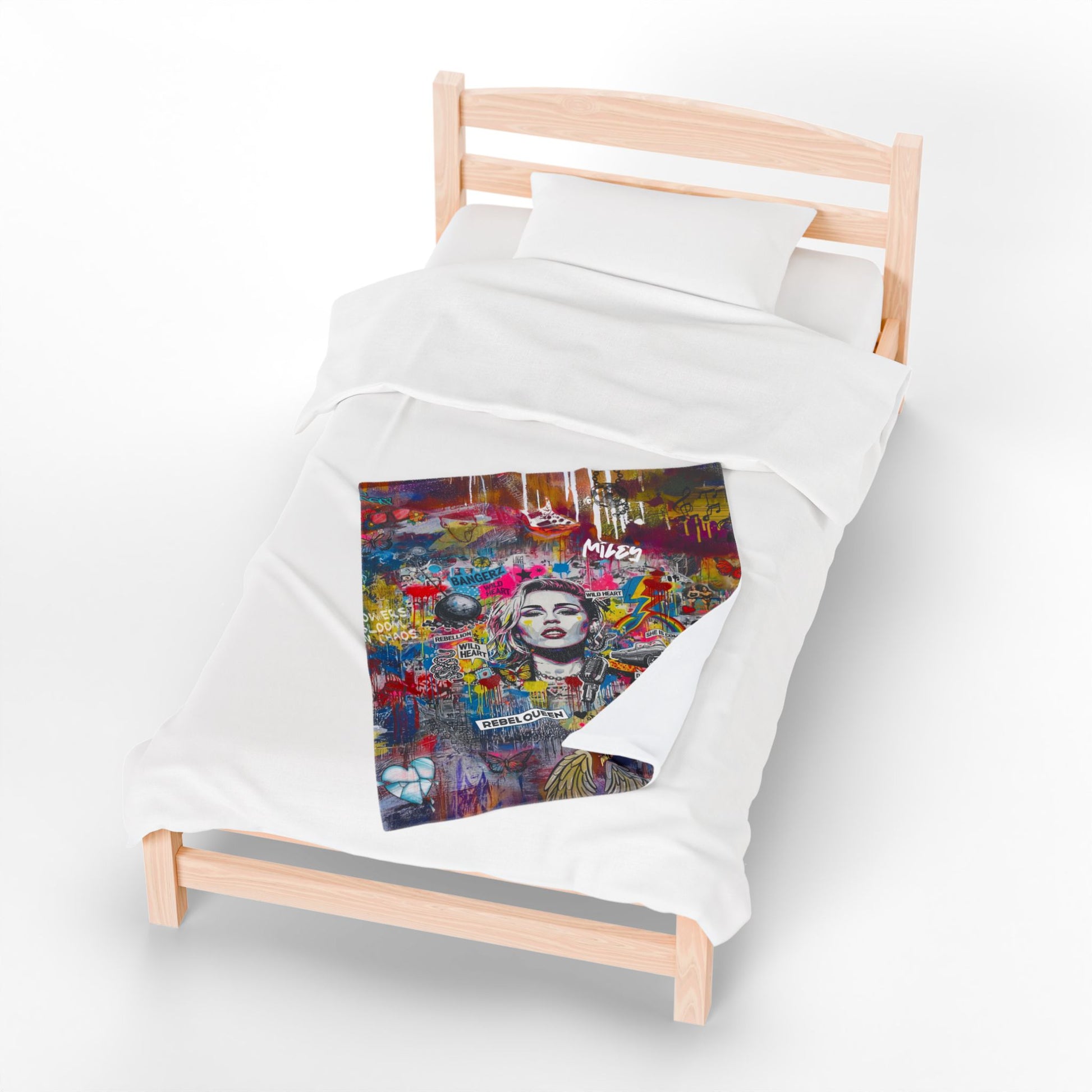 Rebel Queen Velveteen Plush Blanket — Vibrant Pop Art Graffiti Throw