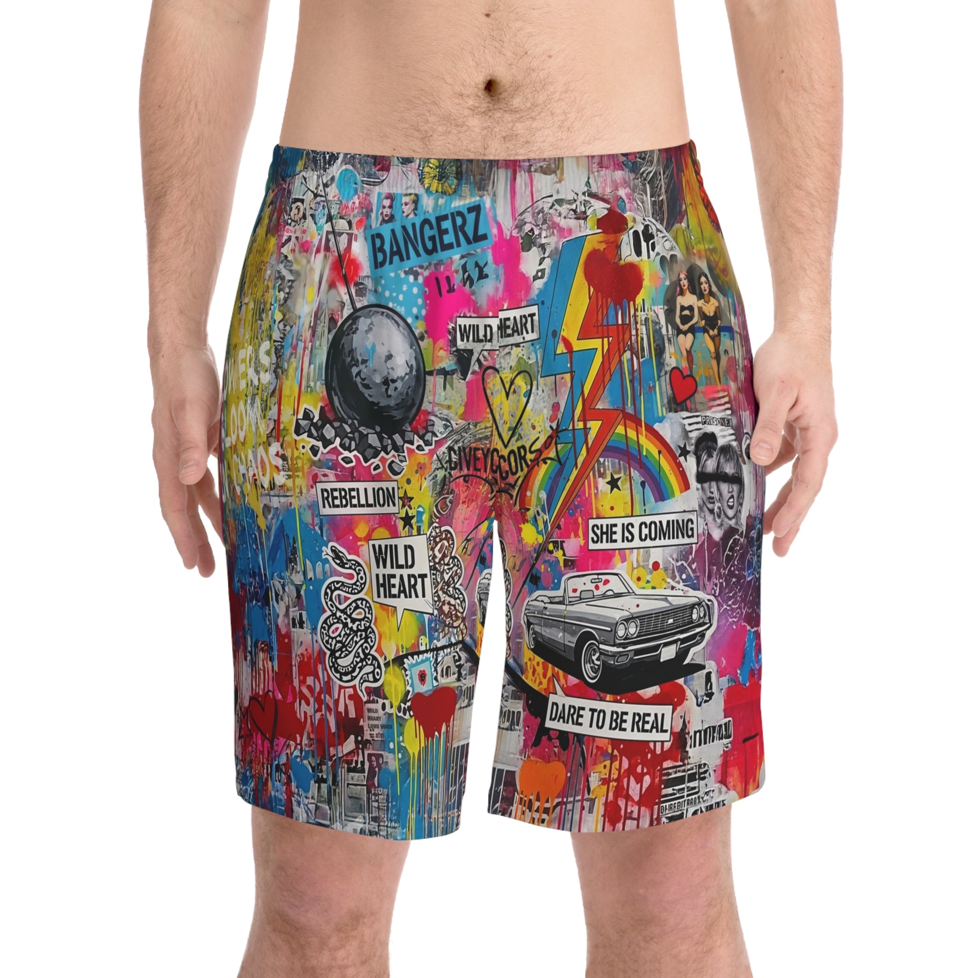 Turn heads with these bold graffiti-style shorts, inspired by Miley Cyrus’s fearless energy and unapologetic vibe. Featuring vibrant colors, iconic pop-art graphics, and powerful statements like “Wild Heart” and “Dare to Be Real”, these shorts celebrate rebellion, freedom, and individuality. Perfect for streetwear lovers, fans of Miley, or anyone ready to make a statement.