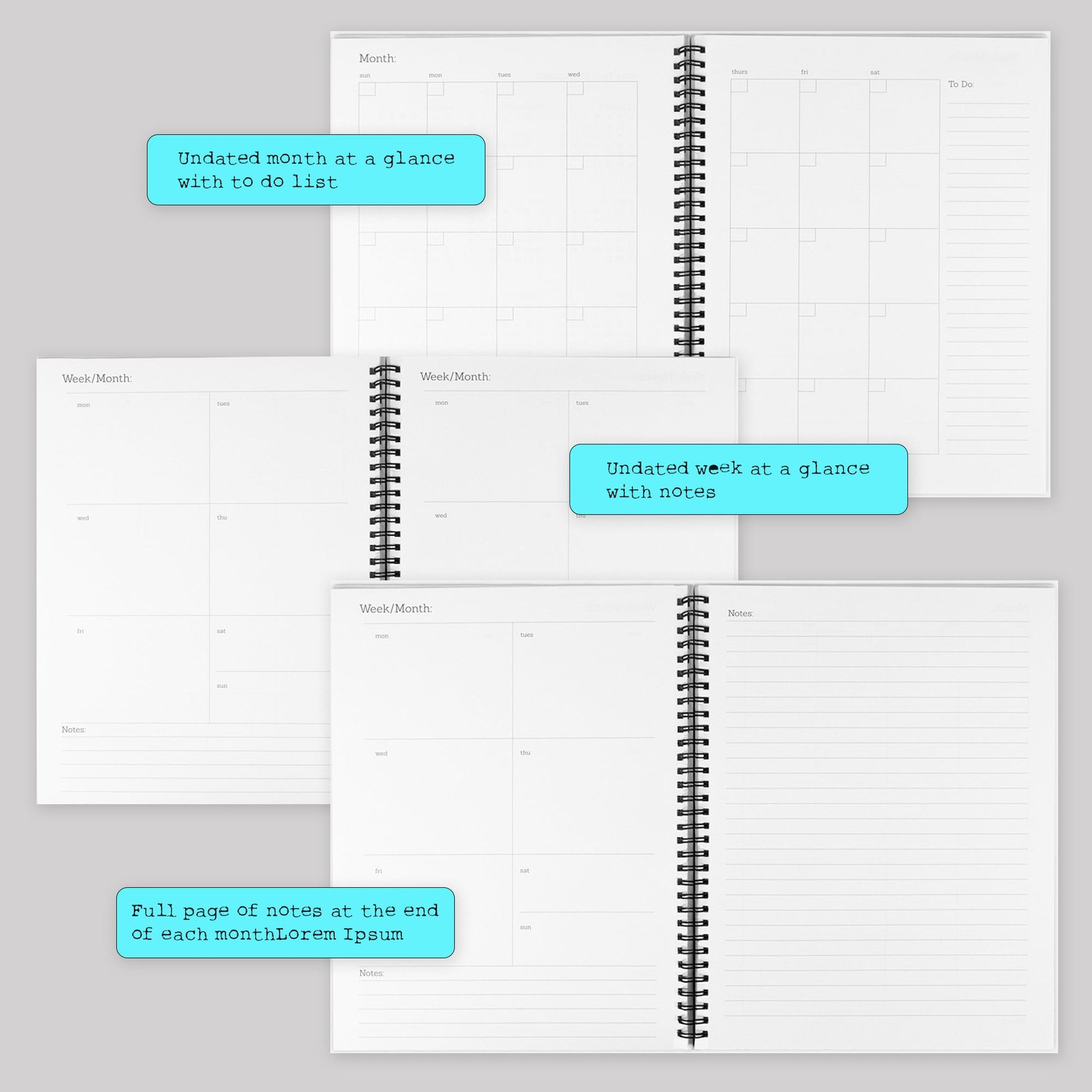 Weekly Spreads: Plan days hour-by-hour + jot notes for flexibility.