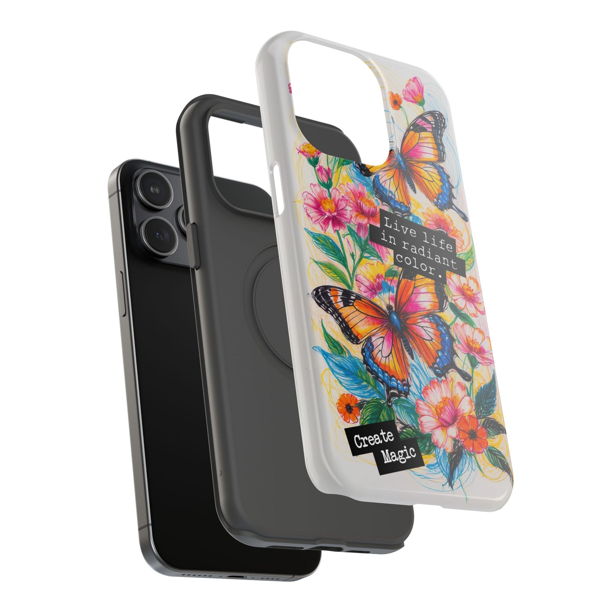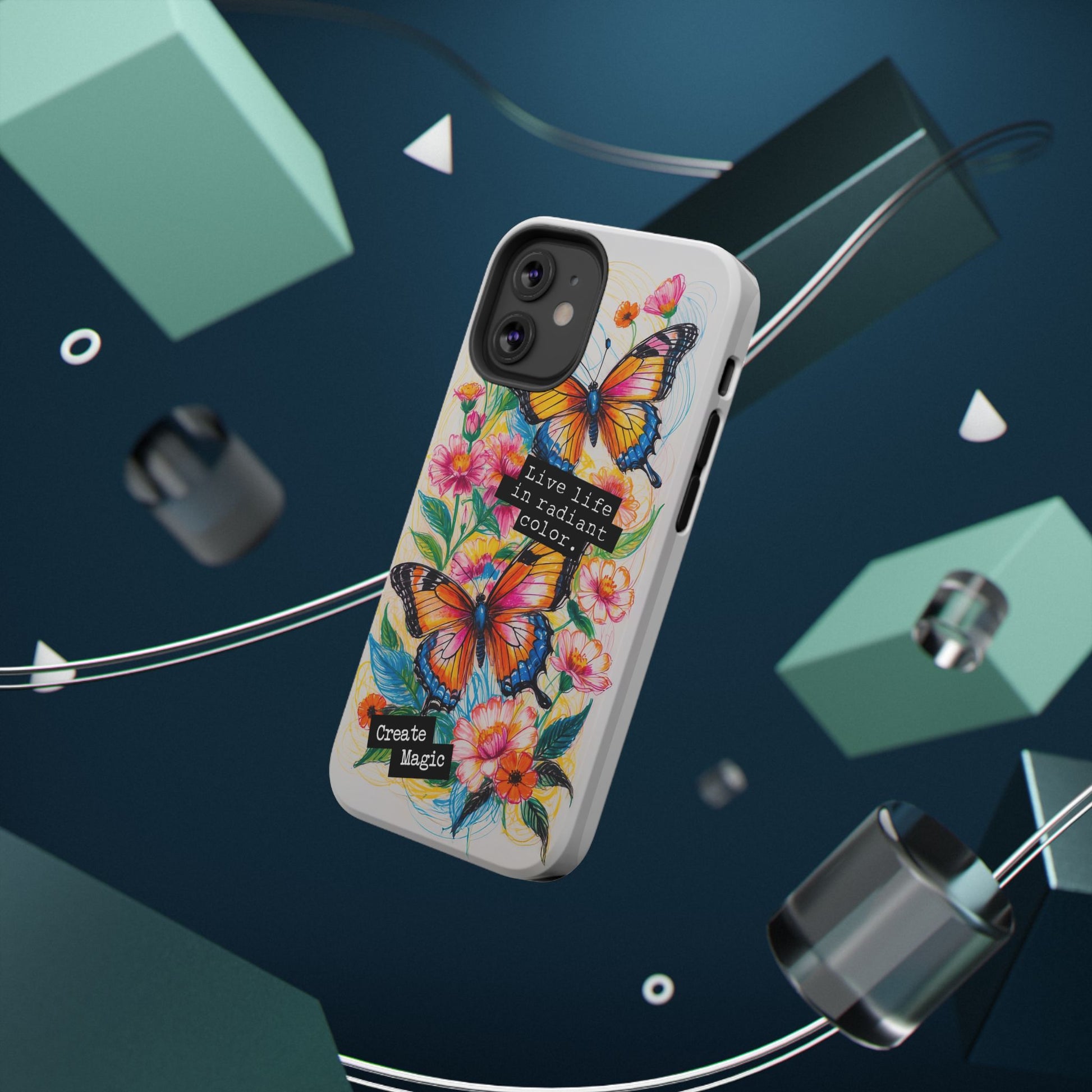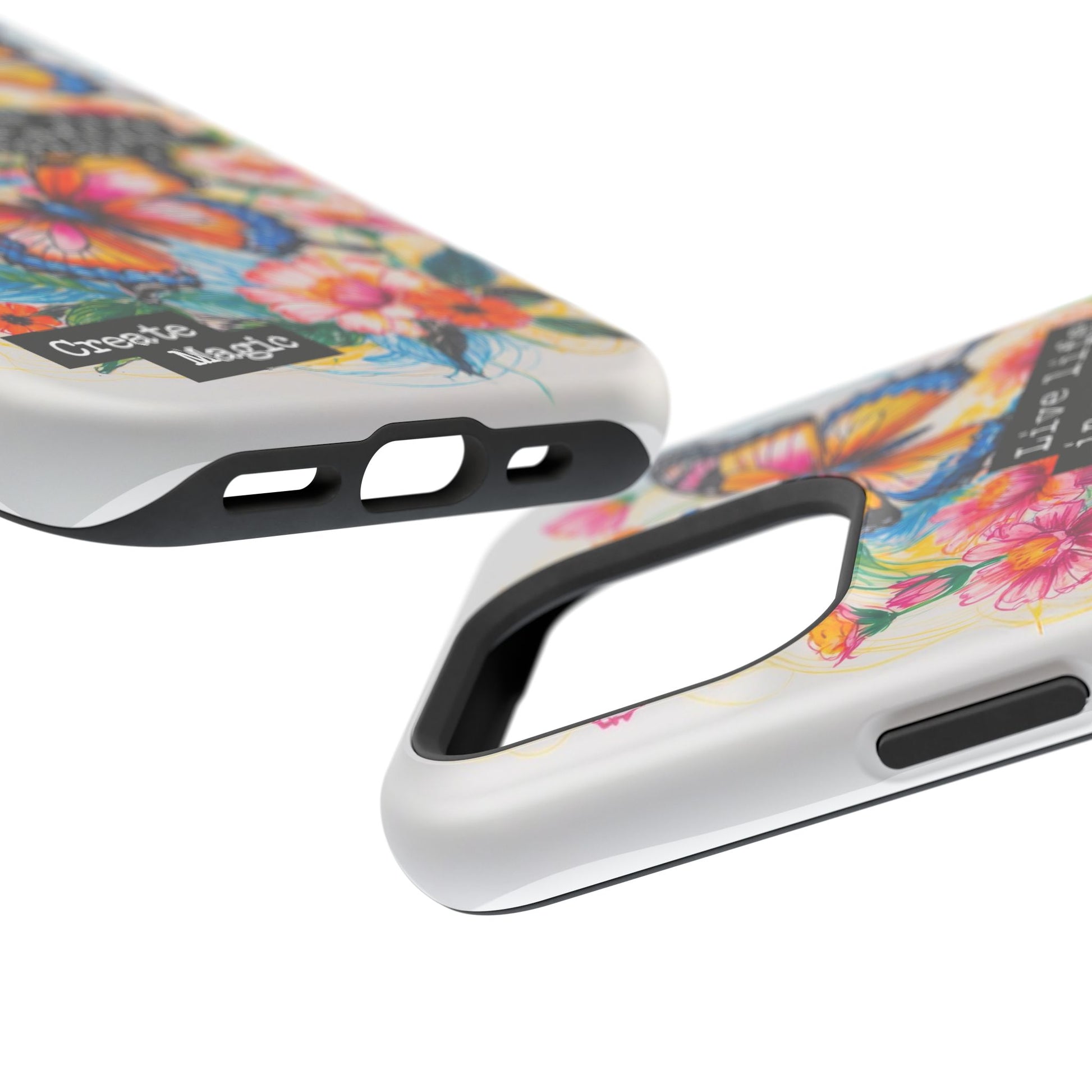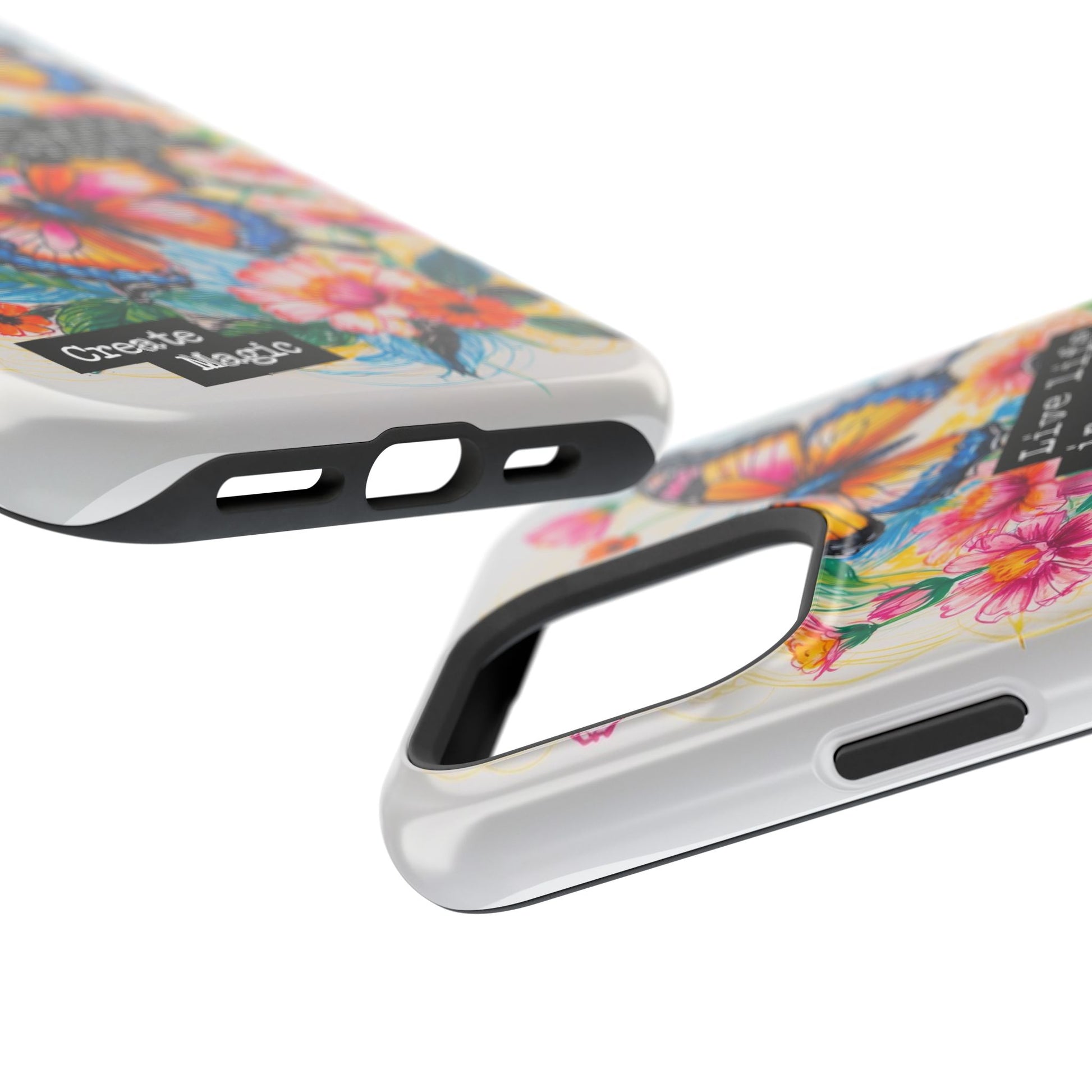 Transform your phone into a daily dose of inspiration with our Vibrant Butterfly and Flower Sketch Phone Case. Designed for those who crave a splash of color and positivity, this case features a beautiful, artistic sketch illustration of fluttering butterflies and blooming flowers, paired with uplifting motivational text. It's more than just a phone accessory; it's a statement piece that brightens your day every time you pick up your phone.