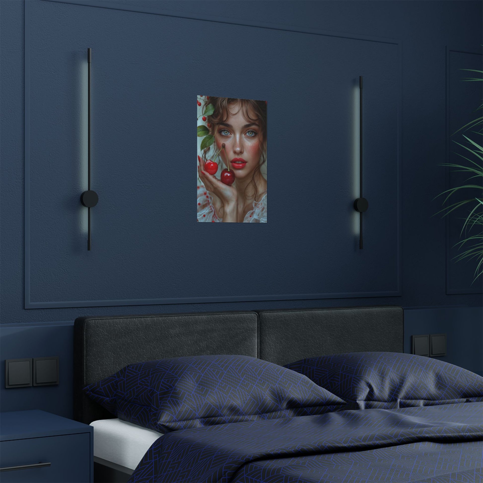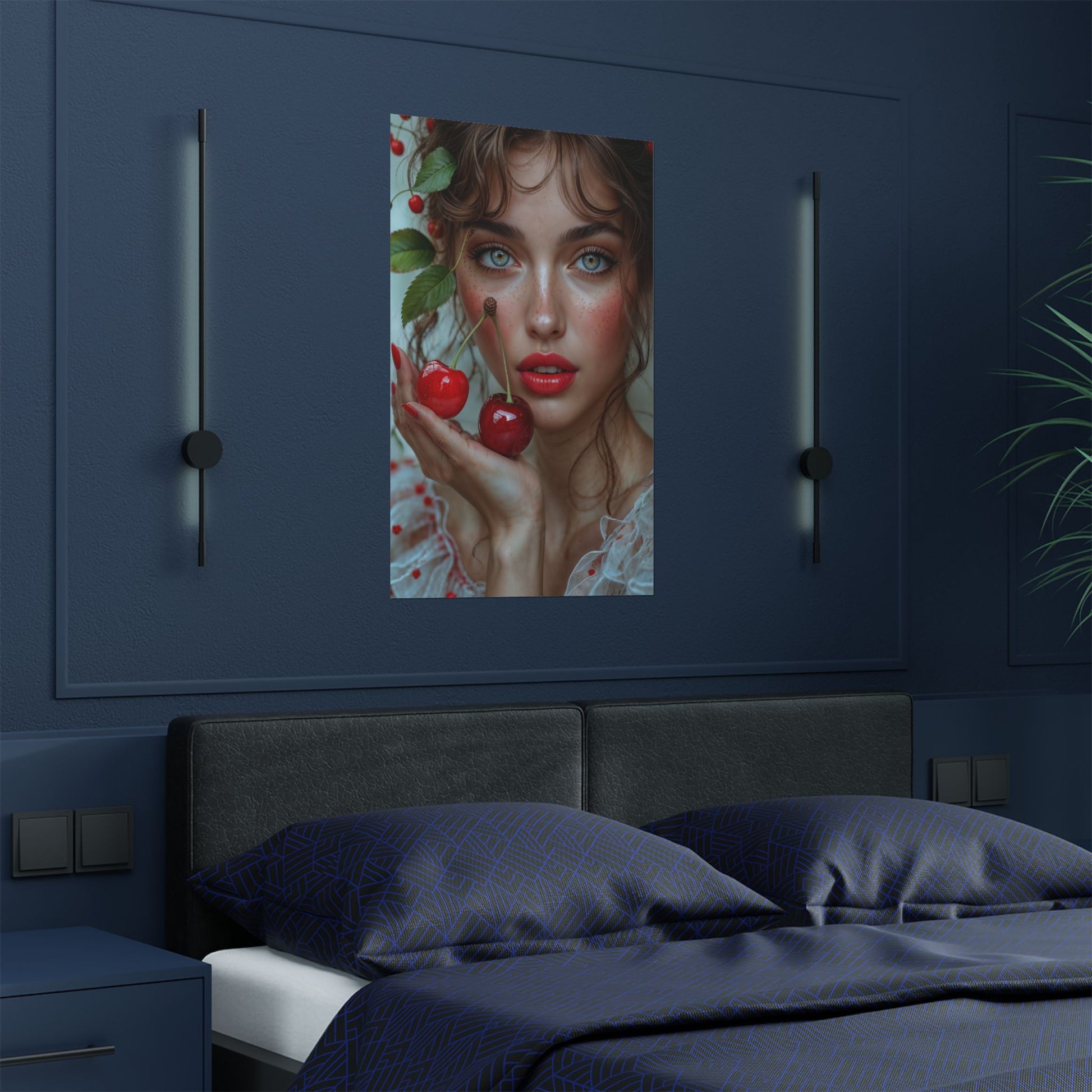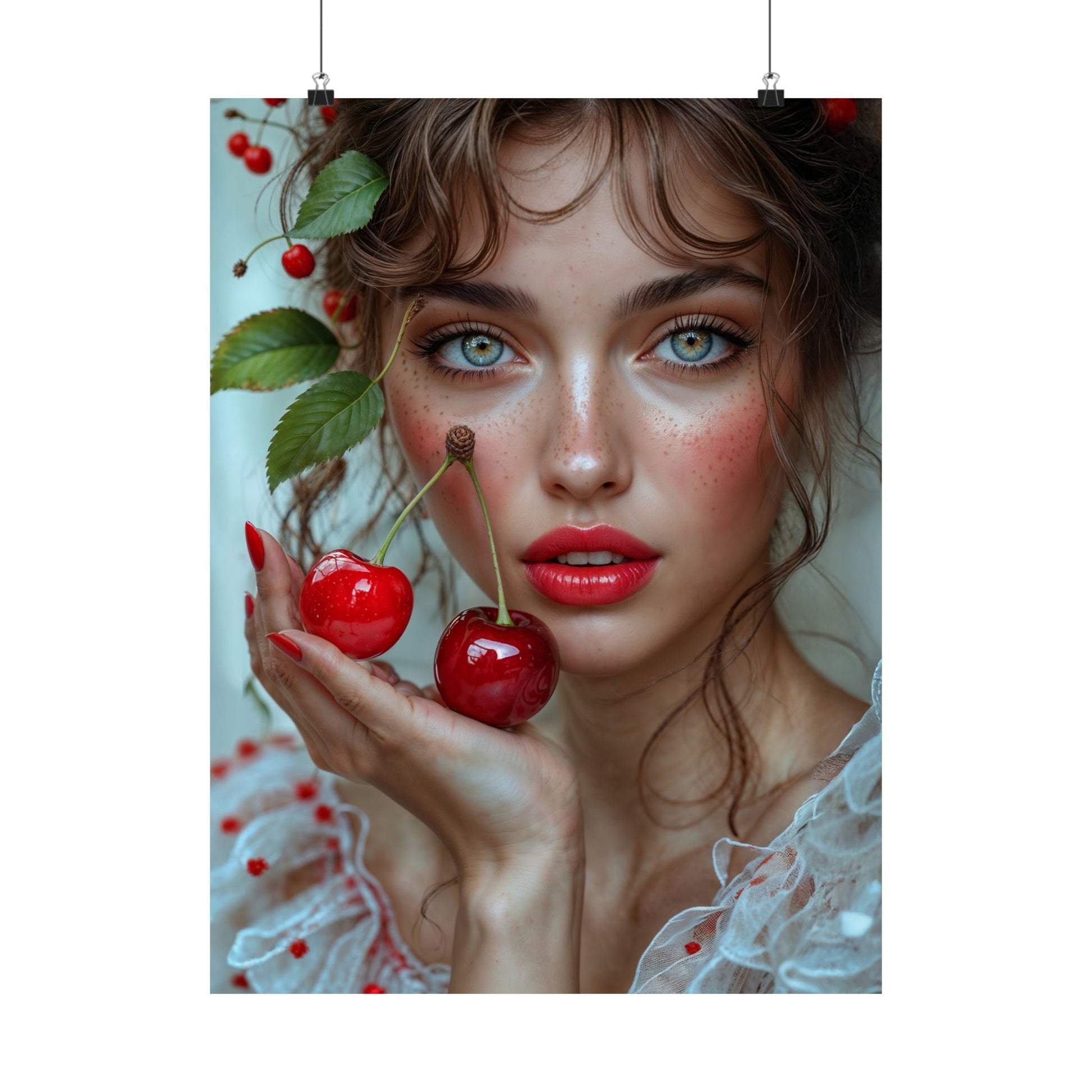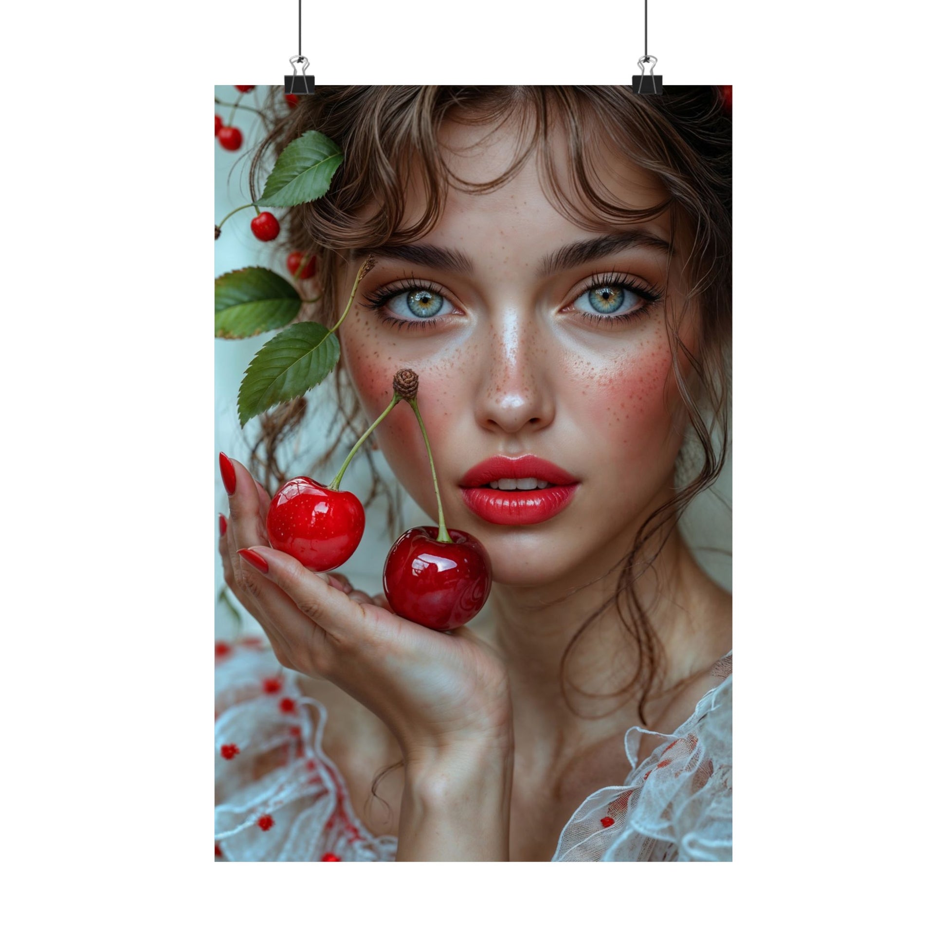Elevate your space with this vibrant and high-resolution satin poster featuring a captivating artistic portrait of a young woman delicately holding cherries. Printed on professional-level 300gsm satin paper, this poster boasts exceptional image clarity, rich colors, and a subtle, low-glare finish that adds a touch of elegance to any room. Available in 5 different sizes, this durable and long-lasting museum-grade poster is the perfect way to infuse art and personality into your home decor. Its versatility makes it ideal for hanging in bedrooms, living rooms, offices, or any space craving a pop of color and artistic flair. This stunning satin poster also makes a thoughtful and unique gift for art lovers, home decorators, and anyone who appreciates beautiful imagery. Whether it's for a birthday, holiday, or special occasion, this "Young Woman with Cherries" poster is sure to impress.