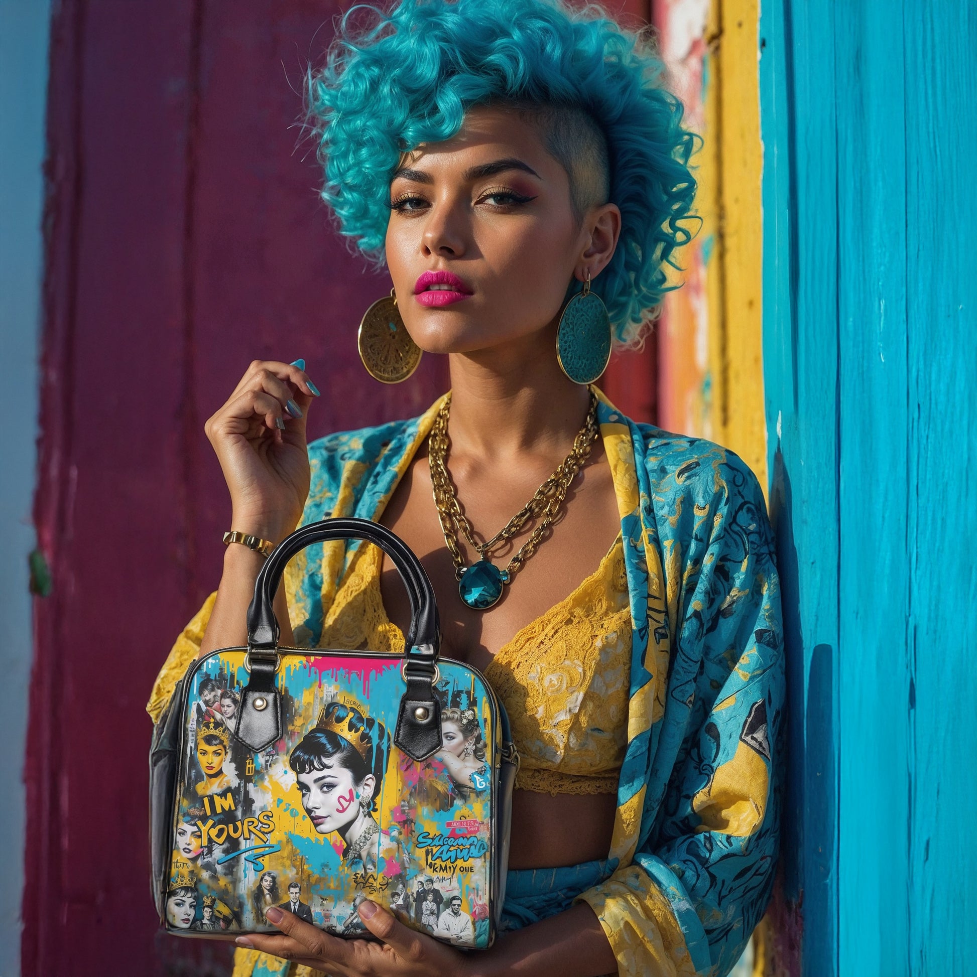 Make a bold statement with our Urban Art Shoulder Bag, featuring a striking graffiti-inspired design that exudes modern edge and creativity. Crafted from 100% premium PU leather, this bag combines style and durability. The vibrant double-sided print showcases a mix of iconic imagery and street art elements, making it a true standout piece. With a secure zippered top closure, sleek black handles, and a removable, adjustable shoulder strap, it offers versatility for any occasion. The spacious interior, lined with durable polyester, ensures practicality without compromising on style. Perfect for those who love to express their individuality!