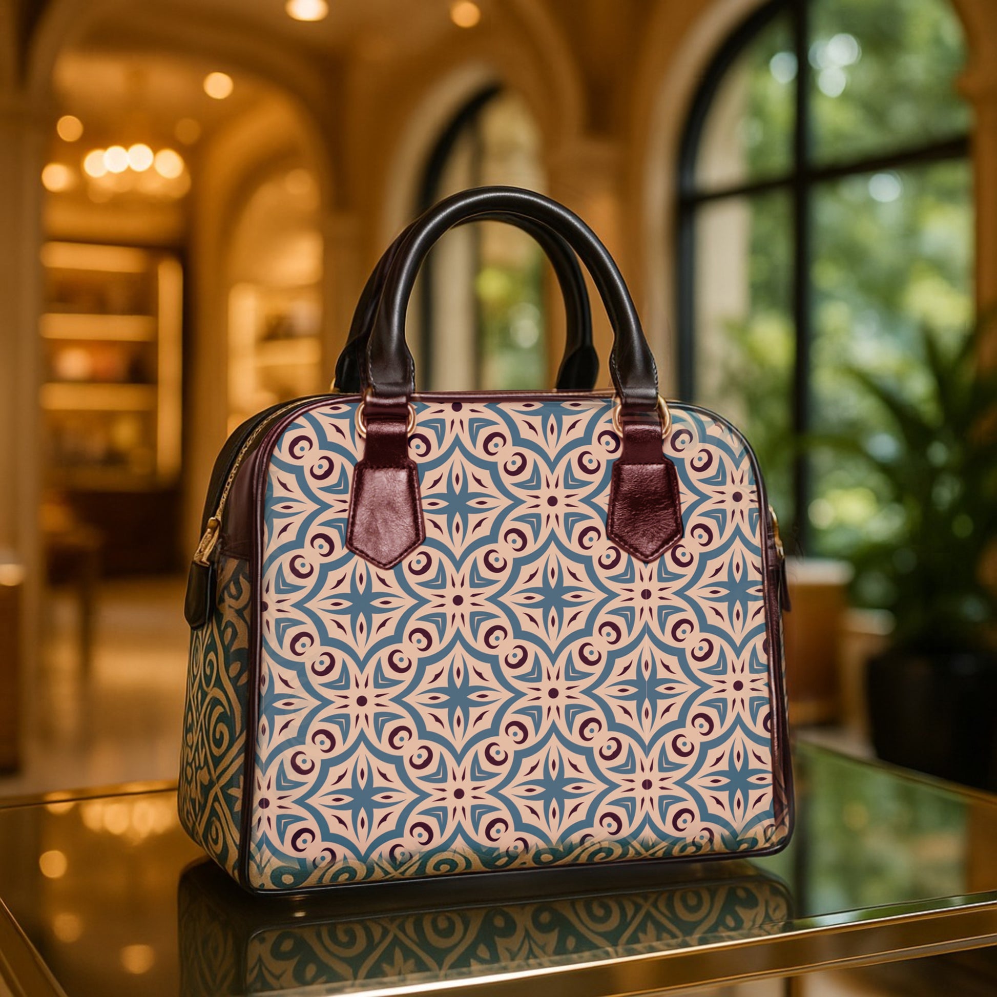 Elevate your style with our Geometric Elegance Shoulder Bag, featuring a sophisticated double-sided print inspired by intricate tile patterns. Designed for both practicality and durability, this bag is crafted with high-quality materials to ensure long-lasting use. It includes a secure zippered top closure, sleek black handles, and an adjustable, removable fabric shoulder strap, offering versatility to use as a chic handbag or shoulder bag. With a spacious, polyester-lined interior, this bag is perfect for carrying your essentials while adding a touch of timeless elegance to your everyday look.