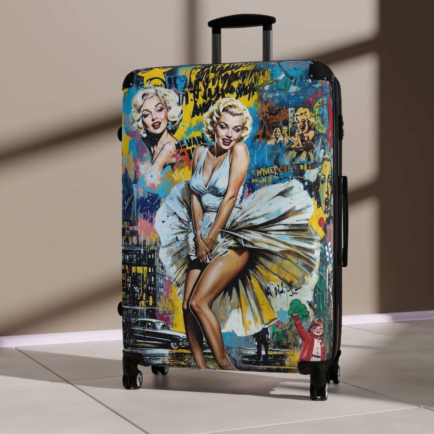Elevate your travel experiences with this captivating suitcase that celebrates the enduring, iconic allure of Marilyn Monroe. Bursting with vibrant pop art energy and a graffiti-inspired design, this one-of-a-kind piece is a must-have for fashion enthusiasts, art lovers, and bold adventurers who refuse to blend in.