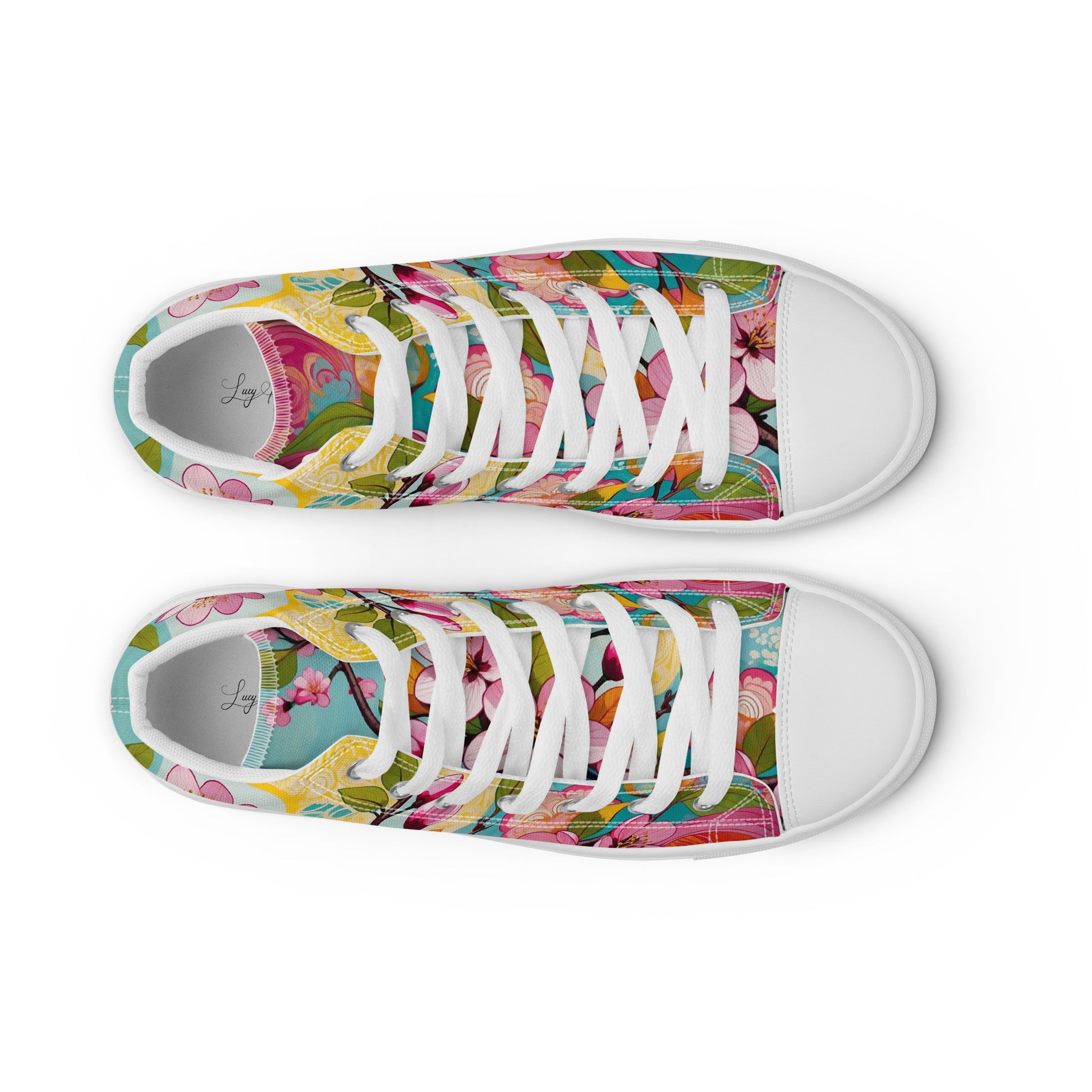 Women’s Floral High Top Sneakers – Colorful Canvas Streetwear Shoes
